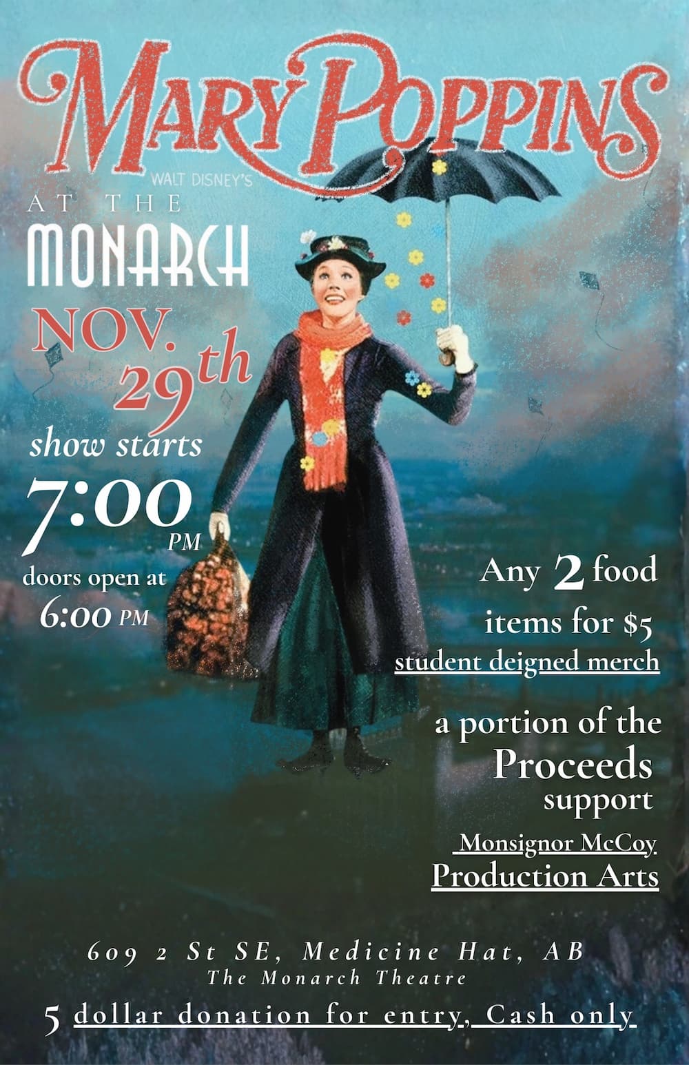 In preparation for Monsignor McCoy's production of Mary Poppins, we will be running a special showing of the movie Mary Poppins!